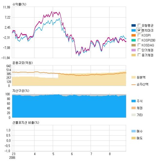 ¼öÀÍ·üÀº Ç϶ôÀ庸´Ù »ó½ÂÀå¿¡¼ µÎµå·¯Á³´Ù.ÀÛ³â 11¿ù 2ÀϺÎÅÍ 2006³â 1¿ù 17ÀϱîÁö ¼ºÀåÇüÀÌ Æò±Õ 23.21%ÀÇ ¼öÀÍÀ» ³»´Â µ¿¾È »ï¼º¹è´çÁÖÀå±âÁÖ½Ä 1Àº 25.25%¸¦ ±â·ÏÇß´Ù. µ¿ÀϱⰣ(11¿ù 1ÀϺÎÅÍ 1¿ù 16ÀÏ)µ¿¾È ÄÚ½ºÇÇÁö¼ö°¡ 19.58% »ó½ÂÇÑ °Í°ú ºñ±³ÇÒ ´ë 5.67%Æ÷ÀÎÆ® ³ôÀº ¼º°úÀÌ´Ù. ¹Ý¸é ¿ÃÇØ 5¿ù 12ÀϺÎÅÍ 6¿ù 8ÀϱîÁö ¼ºÀåÇüÀÌ Æò±Õ 13.13%ÀÇ ¼Õ½ÇÀ» ±â·ÏÇÒ ¶§ ÀÌ ÆÝµå´Â 15.17%ÀÇ ¼Õ½ÇÆøÀ» ±â·ÏÇß´Ù. µ¿ÀϱⰣ ¹è´çÁö¼öÀÎ KODI¿Í ÄÚ½ºÇÇÁö¼ö´Â °¢°¢ 11.89%, 13.51%ÀÇ ¼Õ½ÇÀ» ±â·ÏÇß´ø °Í°ú ºñ±³ÇØ º¼ ¶§ ¼Õ½ÇÆøÀÌ ³ôÀº °ÍÀ¸·Î ³ªÅ¸³µ´Ù. ÀÌ´Â °°Àº ±â°£ À¯°¡Áõ±Ç½ÃÀå¿¡¼ ´ëÇüÁÖ´Â 13.01%, ÁßÇüÁÖ, ¼ÒÇüÁÖ´Â °¢°¢ 18.75%, 16.95% ±Þ¶ôÇÏ¸é¼ ÆíÀÔÇÑ Áß¼ÒÇüÁÖ¿¡¼ ¼Õ½ÇÀ» ÀÔÀº °ÍÀ¸·Î ºÐ¼®µÈ´Ù.