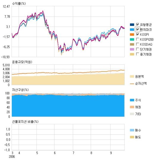 ÆÝµå´Â ¼³Á¤ ÈÄ 91.74%ÀÇ ¼öÀÍ·üÀ» ±â·ÏÇߴµ¥ ÀÌ´Â º¥Ä¡¸¶Å© ¼öÀÍ·ü(62.45%), ¼ºÀåÇü Æò±Õ ¼öÀÍ·ü(71.81%)À» ´ëÆø ´É°¡ÇÏ´Â ¾çÈ£ÇÑ ¼º°ú´Ù. 2006³â ÁÖ°¡°¡ Á¶Á¤À» ¹Þ´Â °úÁ¤¿¡¼ ¿¬ÃÊÀÌÈÄ -0.22%ÀÇ ¼öÀÍ·ü·Î À¯Çü¼öÀÍ·ü(-3.51%)´ëºñ 3.29%Æ÷ÀÎÆ® ´É°¡ÇÏ´Â ¾çÈ£ÇÑ ¼º°ú¸¦ ±â·ÏÇß´Ù. ÃÖ±Ù 6°³¿ù, 9°³¿ù, 12°³¿ù, ¿¬ÃÊÀÌÈÄ ¼º°ú´Â Àü ±â°£¿¡ °ÉÃÄ À¯Çü¼öÀÍ·üÀ» ÃʰúÇϸç À¯Çü ³» »óÀ§±ÇÀ» À¯ÁöÇϰí ÀÖ´Ù. ÆÝµå ¼º°ú´Â ÆÝµå°¡ Ç¥¹æÇÏ´Â ¾ÈÁ¤ÀûÀÎ Àå±âÅõÀÚ¸¦ Ãß±¸ÇÏ´Â ¿î¿ëöÇп¡ °É¸Â´Â ¸ð½ÀÀ» º¸ÀδÙ. ±×·¯³ª ¼öÀÍ·üÀÇ º¯µ¿¼ºÀ¸·Î ³ªÅ¸³½ À§ÇèÀº °¢ ±â°£º°·Î À¯Çü ³» ÃÖÇÏÀ§±ÇÀ» ±â·ÏÇϰí ÀÖ´Ù. Á¾ÇÕÁÖ°¡Áö¼ö ´ëºñ ¼öÀÍ·ü ¹Î°¨µµ¸¦ ³ªÅ¸³»´Â º£Å¸°ª ¿ª½Ã 1³â ±âÁØ 1.10·Î ¼ºÀåÇü Æò±Õ 0.98º¸´Ù ³ô´Ù. ÆÝµå´Â Àå±âÅõÀÚ¸¦ Ç¥¹æÇϰí ÀÖÀ¸³ª, ½ÇÁ¦·Î´Â ÀæÀº Á¾¸ñ±³Ã¼¸¦ ÅëÇÑ Àû±ØÀûÀÎ ½ÃÀå´ëÀÀÀ» Çϰí ÀÖ´Â °ÍÀ¸·Î ºÐ¼®µÈ´Ù.