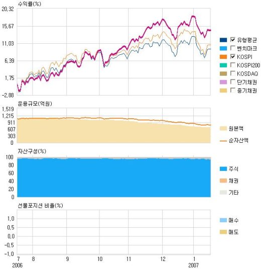05³â 11¿ù ÀÌÈÄ Áß¼ÒÇüÁÖ Á¾¸ñÀÌ »ó´ëÀûÀ¸·Î ¾à¼¼¸¦ º¸ÀÌ¸é¼ È¯¸Å°¡ Áõ°¡Çß´Ù. ÆÝµåÀÇ ¼³Á¤¾×Àº 05³â 12¿ù 1,800¾ï¿ø ±Ô¸ð¿¡¼ ÀÚ±ÝÀÌ °¨¼ÒÇØ ÇöÀç 716¾ï¿ø ±Ô¸ð·Î ¿î¿ëµÇ°í ÀÖÀ¸¸ç, ¼³Á¤ Ãʱâ ÁßÇü°¡Ä¡ÁÖ ½ºÅ¸ÀÏÀ» º¸¿´À¸³ª 05³â 12¿ù¸»ºÎÅÍ ´ëÇüÁÖ ºñÁßÀÌ Á¡Â÷ ³ô¾ÆÁ® 06³â 5¿ù¸» ÀÌÈĺÎÅÍ´Â ´ëÇü°¡Ä¡ÁÖ·Î ¿î¿ë½ºÅ¸ÀÏÀÌ ¹Ù²î¾ú´Ù.