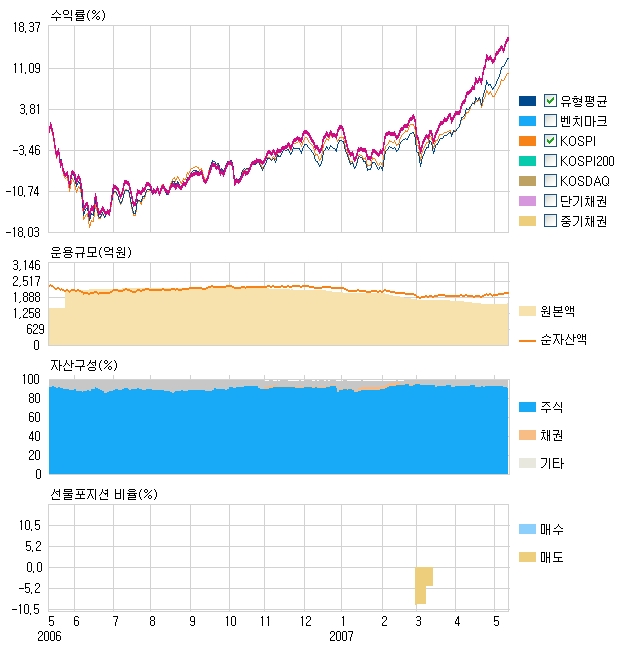 2005³â 1¿ù ¼ºÀåÇü ÆÝµå·Î º¯°æµÈ ÀÌÈÄ ÁÙ°ð Áß»óÀ§±Ç ¼ºÀûÀ» À¯ÁöÇϰí ÀÖ´Ù. ÃÖ±Ù 1³â ¼º°ú´Â 15.68%·Î ¼ºÀåÇü ÆÝµå °¡¿îµ¥ »óÀ§ 12%¿¡ ÇØ´çÇÑ´Ù.
