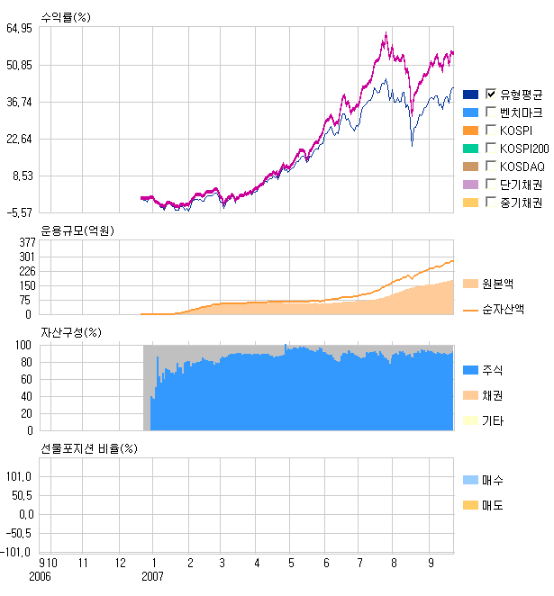 2007³â 6¿ù¸» ±âÁØÀ¸·Î ÆÝµå°¡ ÆíÀÔÇÑ Á¾¸ñ¼ö´Â 41°³ Á¾¸ñÀ¸·Î ´Ù¸¥ ¼ºÀåÇü ÆÝµå¿¡ ºñÇØ ÀûÀº ÆíÀÌ´Ù. º¸À¯»óÀ§ Á¾¸ñ ´ëºÎºÐÀº SK±×·ì°ü·ÃÁÖ·Î ÅõÀÚºñÁßÀº ¾à 52%Á¤µµ´Ù. À̹ۿ¡ POSCO (2.9%)¸¦ ºñ·ÔÇØ ´ë¿ìÁõ±Ç (2.69%) ´ëÇÑÇ×°ø (2.6%) ű¤ (2.3%) µî¿¡ ÁÖ·Î ÅõÀÚÇϰí ÀÖ´Ù.