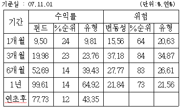 ÇÏÁö¸¸ ±Û·Î¹ú½ÅÈï±¹½ÃÀåÀÌ Á¶Á¤ÀÌÈÄ Áö¼ÓÀûÀÎ »ó½Â¼¼¸¦ À̾¿¡ µû¶ó Áö³ 1³â°£ ¿î¿ë¼öÀÍ·üÀº 99.61%·Î ÇØ¿ÜÁÖ½ÄÆÝµå Æò±Õ 64.92%º¸´Ù 34.69%Æ÷ÀÎÆ®³ª ³ôÀº ¼º°ú¸¦ °Åµ×´Ù. ±×·³¿¡µµ ºÒ±¸ÇÏ°í ÆÝµå¼öÀÍ·üÀÇ º¯µ¿¼ºÀ¸·Î ³ªÅ¸³ ÅõÀÚÀ§ÇèÀº ÇØ¿ÜÁÖ½ÄÆÝµå Æò±Õ°ú ºñ±³ÇÒ ¶§ ¾à°£ ³ôÀº ÆíÀÌ´Ù.
