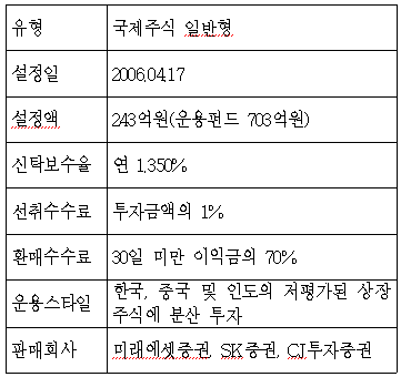 ÀÌ ÆÝµå´Â Çѱ¹, Áß±¹, Àεµ¿¡ »óÀåµÈ ÁÖ½ÄÅõÀÚ¸¦ ÅëÇØ Àå±âÀûÀ¸·Î Ãʰú¼öÀÍÀ» Ãß±¸Çϰí ÀÖ°í, Áß±¹°ú Àεµ½ÃÀåÀÌ ±¹³» ÁֽĽÃÀ庸´Ù ³ôÀº º¯µ¿¼ºÀ» º¸À̰í Àֱ⠶§¹®¿¡ ±¹³» ÁֽĽÃÀå¿¡ ´ëÇÑ ºÐ»êÂ÷¿ø¿¡¼ Á¦ÇÑÀûÀÎ Á¢±ÙÀÌ ¹Ù¶÷Á÷ÇÏ´Ù.