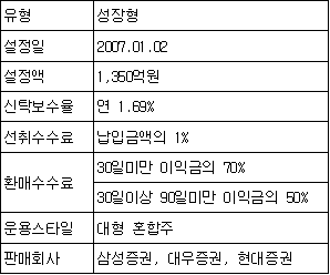 2007³â 8¿ù¸» ±âÁØÀ¸·Î ÆÝµå´Â ÀÚ»êÀÇ 95%ÀÌ»óÀ» ÁֽĿ¡ ÅõÀÚÇϰí ÀÖÀ¸¸ç ´ëÇüÁÖ À§ÁÖ·Î ÅõÀÚÇϰí ÀÖ´Ù. ÃÑ 40°³ÀÇ Á¾¸ñ¿¡ ºÐ»êÅõÀÚÇϰí Àִµ¥ ÀÌ´Â ´Ù¸¥ ¼ºÀåÇü ÆÝµå¿¡ ºñÇØ ÅõÀÚÁ¾¸ñ ¼ö´Â ÀûÀº ÆíÀÌ´Ù.