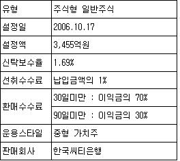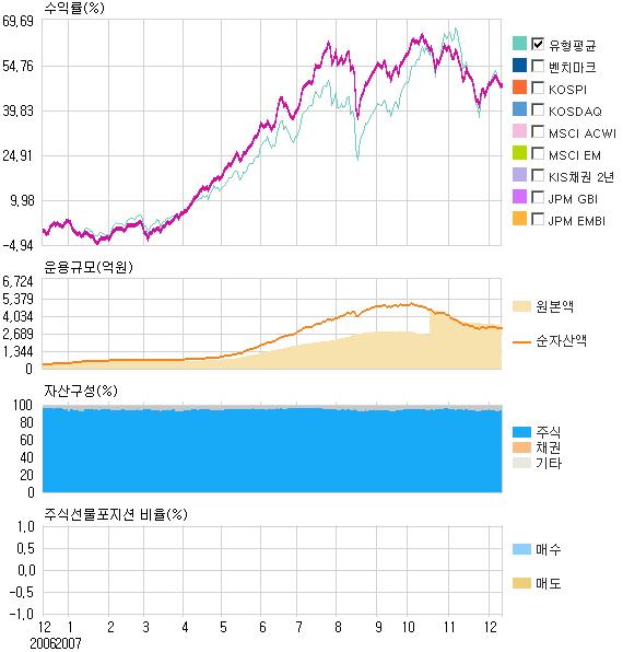 2007³â 9¿ù¸» ±âÁØÀ¸·Î ÆÝµåÀÇ °¡Ä¡ÁÖ ÆíÀÔºñÁßÀº 69.45%·Î ÀϹÝÁÖ½ÄÆÝµåÀÇ À¯ÇüÆò±Õ¿¡ ºñÇØ ³ôÀº ÆíÀÌ´Ù. ÆÝµå´Â ²ÙÁØÈ÷ 90%ÀÌ»ó ÁֽįíÀÔºñÀ²À» À¯ÁöÇϰí ÀÖÀ¸¸ç 2007³â 9¿ù¸» ÇöÀç ÃÑ 91°³ÀÇ Á¾¸ñ¿¡ ºÐ»ê ÅõÀÚÇϰí ÀÖ´Ù. ÀÌ ÆÝµå´Â ÆíÀÔÁ¾¸ñ Àüü¿¡ ´ëÇØ ¾÷Á¾º° ½Ã°¡ºñÁßÀ» °í·ÁÇØ ÀÏÁ¤ºñÀ²·Î ±ÕµîÅõÀÚÇϰí ÀÖ´Ù. ÆíÀÔºñÁß »óÀ§ Á¾¸ñÀº »ï¼º¹°»ê, LGÈÇÐ, Çѱ¹Àü·Â µîÀÌ°í »óÀ§ 10¿©°³ Á¾¸ñÀÇ ÆíÀÔºñ´Â °¢°¢ 3%¸¦ ³ÑÁö ¾Ê´Â´Ù. ÀÌ·± ¿î¿ë¹æ¹ýÀº ÀϺΠÁ¾¸ñ¿¡ ÀÇÇØ ÆÝµåÀÇ ¼º°ú°¡ Á¿ìµÇ´Â °ÍÀ» ¹æÁöÇÏ°í ÆÝµå°¡ °¡Áø °¡Ä¡ÁÖ ½ºÅ¸ÀÏÀ» ¿ÂÀüÈ÷ ÁöÄѳª°¡±â À§ÇÔÀ¸·Î º¼ ¼ö ÀÖ´Ù.