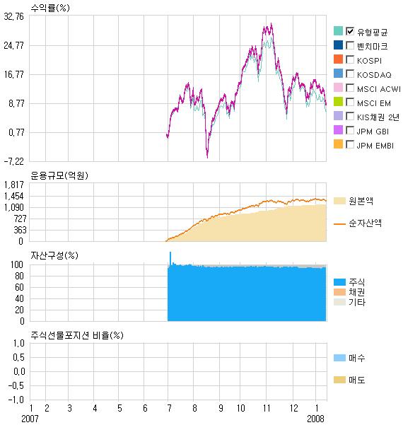 2007³â 10¿ù¸» ±âÁØÀ¸·Î ÆÝµå´Â ÀÚ»êÀÇ 96.95%ÀÌ»óÀ» ÁֽĿ¡ ÅõÀÚÇϰí ÀÖÀ¸¸ç ´ëÇüÁÖ¿Í Áß¼ÒÇüÁÖ¸¦ °¢°¢ 64.46%, 35.54% ÆíÀÔÇϰí ÀÖ´Ù.
