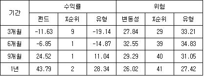 ¿¬ÃÊ ÈÄ ¼öÀÍ·üÀº -11.64%·Î %¼øÀ§ 14À§¸¦ ±â·Ï ÁßÀÌ´Ù. ÃÖ±Ù 3°³¿ù, 6°³¿ù ¼öÀÍ·ü ¶ÇÇÑ »óÀ§ 20%¾È¿¡ µé¸ç »ó´ëÀûÀ¸·Î ¾ÈÁ¤ÀûÀÎ ¼öÀÍ·üÀ» ±â·ÏÇϰí ÀÖ´Ù. ÃÖ±Ù ¼º°ú°¡ ¾çÈ£ÇÏ°Ô ³ªÅ¸³ ¹è°æ¿¡´Â Áõ±ÇÁÖ, º¸ÇèÁÖ µî ³»¼öÁÖ°¡ ¾çÈ£ÇÑ ¼º°ú¸¦ ±â·ÏÇÏ°í »ï¼ºÀüÀÚ, ´ëÇÑÇ×°ø, Çö´ëÂ÷, NHN µîÀÇ »óÀ§ ÅõÀÚ Á¾¸ñµéÀÌ ¼±¹æÇ߱⠶§¹®À¸·Î ºÐ¼®µÈ´Ù.