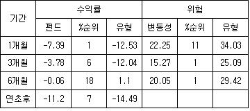 ÆÝµåÀÇ À§Çè ¼öÁØÀ» »ìÆìº¸¸é, 3°³¿ù ¼öÀÍ·ü º¯µ¿¼ºÀÌ 15.27%·Î ½ÅÈï±¹ÁÖ½Ä ÆÝµå(25.09%)¿Í ºñ±³ÇÒ ¶§ ³·Àº ÆíÀÌ´Ù.