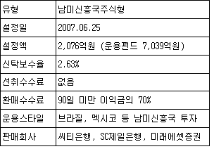 ¹Ì±¹¹ß ¼ºêÇÁ¶óÀÓ »çÅ·Π¹Ì±¹ °æ±â Àü¸Á¿¡ ´ëÇÑ ¿ì·Á°¨ÀÌ ¹Ý¿µµÇ¸é¼ ¿Ãµé¾î ±Û·Î¹ú Áõ½Ã°¡ ÈÖû°Å¸®°í ÀÖÁö¸¸ ³²¹ÌÁö¿ªÁõ½Ã´Â »ó´ëÀûÀ¸·Î °ß°íÇÑ ¸ð½ÀÀ» º¸¿©ÁÖ°í ÀÖ´Ù. MSCI ³²¹Ì½ÅÈï±¹ÁÖ½ÄÀº 1¿ù 21ÀϱîÁö ¿¬ÃÊ´ëºñ Ç϶ô·üÀÌ 16%¿¡ ´ÞÇßÀ¸³ª ÀÌÈÄ ³«ÆøÀ» ¸ðµÎ ¸¸È¸ÇÏ¸ç »ó½Â¼¼¸¦ º¸À̰í ÀÖ´Ù. ¿Á¼ö¼ö, ´ëµÎ µîÀÇ ³ó»ê¹°°ú ö±¤¼® µî ¿øÀÚÀç °¡°Ý»ó½Â¿¡ ÇýÅÃÀ» ÈûÀÔÀº ³²¹Ì ÆÝµåµéÀº »ó´ëÀûÀ¸·Î ¾ÓÈ£ÇÑ ¼ºÀûÀ» º¸À̸ç ÇØ¿ÜÁÖ½ÄÆÝµå Áß¿¡¼ %¼øÀ§ 10À§À̳»ÀÇ »óÀ§±ÇÀ» À¯ÁöÇϰí ÀÖ´Ù. 2¿ù 28ÀÏ ÇöÀç ÀÌ ÆÝµåÀÇ ÃÖ±Ù 1°³¿ù ¼º°ú´Â 14.95%¸¦ ±â·ÏÇϰí ÀÖ´Ù.