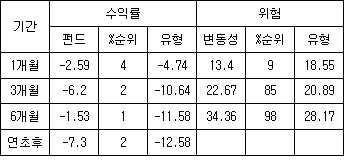 ÃÖ±Ù 6°³¿ù °£ ÆÝµå´Â -1.53%·Î ¾çÈ£ÇÑ ¼ºÀûÀ» º¸À̰í ÀÖ´Ù. ÀÏ¹Ý ÁÖ½Ä ÆÝµå°¡ Æò±Õ 11.58%ÀÇ ¼Õ½ÇÀ» º¸°í ÀÖ´Â »óȲ°ú °ßÁÖ¾î º»´Ù¸é ÆÝµåÀÇ ¼ºÀûÀº »ó´çÈ÷ °ß°íÇÑ ÆíÀÌ´Ù. ÃÖ±Ù 1°³¿ù¿¡µµ À¯Çü´ëºñ 2.15%Æ÷ÀÎÆ® ¾Õ¼´Â µî Ç϶ôÀå¿¡¼ »ó´çÈ÷ ¼±¹æÇϰí ÀÖ´Ù.