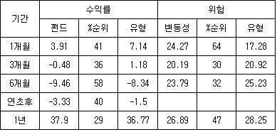 ÃÖ±Ù1³â ÆÝµå´Â 37.90%ÀÇ ¿ì¼öÇÑ ¼ºÀûÀ» ±â·Ï Áß ÀÌ´Ù. ÃÖ±Ù 3°³¿ù ÄÚ½ºÇÇÁö¼ö´Â 6.00% Ç϶ôÇßÀ½¿¡µµ ÆÝµå´Â 0.48%ÀÇ Ç϶ô¿¡ ±×Ä¡´Â µî Ç϶ôÀå¿¡¼ ¾çÈ£ÇÑ ¹æ¾î·ÂÀ» º¸À̰í ÀÖ´Ù. ÀÌ¿¡ ÈûÀÔ¾î ÆÝµå´Â ÃÖ±Ù Àü ±¸°£¿¡¼ »óÀ§±Ç¿¡ À§Ä¡Çϰí ÀÖ´Ù.