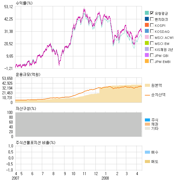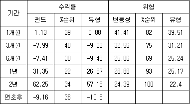 2005³â 12¿ù ¼³Á¤µÈ ÆÝµå´Â ÃÖ±Ù 1,2³â ¼öÀÍ·üÀÌ °¢°¢ 31.35%, 62.25%·Î, ½ÅÈï±¹ÁÖ½Ä ÆÝµå Áß Áß»óÀ§±Ç¿¡ À§Ä¡ÇÏ´Â ¼ºÀûÀ» ³»°í ÀÖ´Ù. ÆÝµåÀÇ À§Çè ¼öÁØÀ» »ìÆìº¸¸é, ¿©Å¸ ½ÅÈï±¹ÁÖ½Ä ÆÝµå°¡ ÃÖ±Ù 1³â°£ ¼öÀÍ·üÀÌ Æò±Õ 25% °¡·® ¿òÁ÷Àε¥ ¹ÝÇØ ÆÝµå´Â 27%·Î Á¶±Ý ³ô°Ô ³ªÅ¸³ª°í ÀÖ´Ù. ÀÌ´Â ÆÝµå°¡ ÅõÀÚÇÏ´Â ´ë»óÀÌ ½ÅÈï °í¼ºÀå ±¹°¡µé·Î ÁÖ°¡º¯µ¿ÀÌ ½ÉÇѵ¥´Ù 2007³â 10¿ù¸»ºÎÅÍ ±Þ¶ô¼¼¸¦ º¸À̰í ÀÖ´Â Áß±¹°ú Àεµ Áõ½Ã Å¿¿¡ ´õ¿í Å« º¯µ¿¼ºÀ» ±â·ÏÇϰí ÀÖ´Ù. µû¶ó¼ ³ôÀº ¼öÀÍ·ü¸¸ÅÀ̳ª À§Çè ¼öÁصµ ³ôÀº ÆÝµå¶ó´Â °ÍÀ» º¸¿©ÁØ´Ù. ±×·¯³ª Áß±¹, Àεµ µî ƯÁ¤ Áö¿ª¿¡¸¸ ÅõÀÚÇÏ´Â ÆÝµåÀÇ º¯µ¿¼ºÀÌ ÃÖ±Ù 1³â °£ Àεµ´Â 30%, Áß±¹Àº 39%¿¡ ´ÞÇß´Ù´Â °Í°ú ºñ±³Çϸé 4°³±¹¿¡ ºÐ»êÅõÀÚÇØ ±× À§ÇèÀº ´Ù¼Ò ÁÙ¾îµé¾ú´Ù°í º¼ ¼ö ÀÖ´Ù.