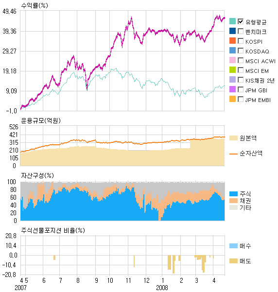 ÆÝµå´Â ±âº»ÀûÀ¸·Î Áõ½Ã »ó½Â±â¿¡´Â À§ÇèÀÚ»êÀÎ ÁÖ½ÄÀÇ ÅõÀÚ ºñÁßÀ» ´Ã·Á ¼öÀÍ È®´ëÈ Àü·«À» ±¸»çÇϰí, Áõ½Ã Ç϶ô±â¿¡´Â ºñÁß Ãà¼Ò ³»Áö´Â ¹æ¾îÀû Æ÷Æ®Æú¸®¿À¸¦ ±¸ÃàÇØ À§ÇèÀ» ÃÖ¼ÒÈÇÑ´Ù. ´Ù½Ã ¸»ÇØ ½ÃÀå »óȲ¿¡ ¸Â´Â ÀÚ»ê ¹èºÐÀ» Àû±ØÀû ¼öÇàÇÑ´Ù. ½ÇÁ¦ ÆÝµå´Â ÀÏ¹Ý È¥ÇÕÇü ÆÝµåº¸´Ù ÀÚ»ê ¹èºÐ ¼Óµµ°¡ ºü¸£°í °ú°¨ÇÏ°Ô ÀÌ·ïÁö°í ÀÖ´Ù. ½ÃÀå»óȲ¿¡ µû¶ó ÀåÀÌ ÁÁÀ¸¸é 80%ÀÌ»ó ³ª»Ú¸é ½ÉÇÏ°Ô 0%±îÁö ¿òÁ÷ÀδÙ. ±×·¯³ª Æò±Õ 30~70% ¼öÁØÀ¸·Î ÅõÀÚÇÑ´Ù. ±¸Ã¼ÀûÀ¸·Î ÆÝµå´Â 2007³â 3¿ù ÀÌÈÄ »ó½ÂÀå¿¡¼ ÁÖ½Ä ÆíÀÔºñ¸¦ Á¡Â÷ ´Ã·Á 7¿ù¸» 87%±îÁö ³ô¿´´Ù°¡ ±× ÈÄ ¼ºêÇÁ¶óÀÓ ¼îÅ©·Î ºÒ¾ÈÇÑ ¸ð½ÀÀ» º¸ÀÌÀÚ 9¿ù ÃÊ 50%·Î ±× ¼öÁØÀ» Å©°Ô ³·Ãè´Ù. ±× ÈÄ ¼¼È÷ ÁÖ½ÄÅõÀÚ ºñÁßÀ» ´Ã·Á 11¿ù ÃÊ ¶Ç´Ù½Ã 85%±îÁö ³ô¿´°í, ±× ÈÄ Áõ½Ã°¡ Ç϶ô±¹¸é¿¡ Á¢¾îµéÀÚ ¿¬¸» ÁÖ½ÄÀ» ÀüºÎ ÆíÃâ Çϱ⵵ ÇÏ´Â µî ½ÃÀå »óȲ¿¡ Àû±ØÀûÀ¸·Î ´ëÀÀÇÏ´Â ¸ð½ÀÀ» º¸¿´´Ù.