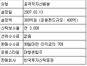 ÁÖ½ÄÈ¥ÇÕÇü ÆÝµå·Î, º¯µ¿¼ºÀÌ ³ô¾ÆÁö°í ÀÖ´Â »óȲ¿¡¼ ÁÖ½ÄÅõÀÚºñÁß Á¶ÀýÀ» ÅëÇÑ À§Çè°ü¸®°¡ °¡´ÉÇÑ ÀÚ»ê¹èºÐÆÝµå´Ù. µû¶ó¼ ½ÃÀå»óȲ¿¡ µû¸¥ Àû±ØÀûÀÎ ´ëÀÀÀÌ °¡´ÉÇÑ ¸¸Å Àå±âÀûÀ¸·Î ¾ÈÁ¤ÀûÀÎ ¼öÀÍÀ» Ãß±¸ÇÏ´Â ÅõÀÚÀÚ¿¡°Ô ¾È¼º¸ÂÃãÀÌ´Ù. ±×·¯³ª ÁÖ°¡ Ç϶ôÀ̳ª º¯µ¿¼ºÀÌ ½ÉÇÒ ¶§ ¼ºÀûÀÌ ÁÁÀº ¹Ý¸é ÁÖ°¡°¡ ¿À¸¦ ¶§ ÁÖ½ÄÇü¸¸Å ³ôÀº ¼öÀÍÀ» ³»Áö ¸øÇÒ ¼ö ÀÖ´Ù´Â °ÍÀ» ÀÎÁöÇϰí À̸¦ Àγ» ÇÒ ¼ö ÀÖ¾î¾ß ÇÑ´Ù. ¶ÇÇÑ ÅõÀÚºñ¿ëÀÌ ¿¬ 3%·Î È¥ÇÕÇü ÆÝµå´Â ¹°·Ð ÁÖ½ÄÇüÀÇ Æò±Õ º¸¼ö º¸´Ù ²Ï ³ô¾Æ ÅõÀÚºñ¿ëÀÌ ºñ½Ñ ´ÜÁ¡ÀÌ ÀÖ´Ù.