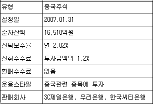 2007³â 1¿ù¿¡ ¼³Á¤µÈ ¡®½´·Î´õÂ÷À̳ª±×·Î½ºÁֽġ¯Àº Áß±¹ »óÇÏÀÌ, ¼¾Á¨ µî Áß±¹º»Åä¿¡ ¼³¸³µÈ ±â¾÷À» ºñ·ÔÇØ È«Äá, ½Ì°¡Æ÷¸£, ·±´ø, ´º¿å µî Àü¼¼°è ÁֽĽÃÀå¿¡ »óÀåµÈ Áß±¹ °ü·Ã ±â¾÷¿¡ ÅõÀÚÇÏ´Â Áß±¹ÁÖ½ÄÆÝµå´Ù. ¿î¿ëÆÝµåÀÇ ÇöÀç ¼³Á¤¾×Àº 1Á¶ 5,938¾ï¿øÀ¸·Î Áö³ ÇϹݱâ ÀÌÈÄ Áß±¹ ÆÝµå ÅõÀÚ ¿Ç³¿¡ ÈûÀÔ¾î ÆÝµå´Â ¼ø½Ä°£¿¡ ÃÊ´ëÇü ÆÝµå·Î ±Þ¼ºÀåÇß´Ù.