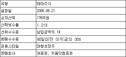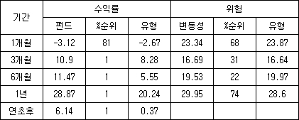 ÆÝµåÀÇ ÃÖ±Ù 1³â ¼öÀÍ·üÀº 28.87%·Î Å׸¶ÁÖ½Ä À¯ÇüÆò±ÕÀ» 8%Æ÷ÀÎÆ®, ÀϹÝÁÖ½ÄÆÝµå¿¡ ºñÇØ 16%Æ÷ÀÎÆ® ÀÌ»ó »óȸÇÏ¸é¼ ÃÖ»óÀ§ ±Ç ¼ºÀûÀ» À¯ÁöÇϰí ÀÖ´Ù. »ï¼ºÆ¯°ËÀÇ ¿µÇâÀ¸·Î Áö³ 4¿ù À̰ÇÈñ ȸÀåÀÌ ¹°·¯³²¿¡ µû¶ó »ï¼º±×·ìÁÖÀÇ ÁÖ°¡°¡ ¾à¼¼¸¦ º¸ÀÌ¸ç ÆÝµåµµ °íÀüÇßÁö¸¸ ¿øÈ ¾à¼¼¿¡ µû¸¥ ¼öÃâÁÖ ¹× IT°ü·Ã ÁÖÀÎ »ï¼ºÁß°ø¾÷°ú »ï¼ºÀüÀÚ µîÀÌ °¼¼¸¦ º¸ÀÌ¸é¼ ÃÖ±Ù ÆÝµå ¼öÀÍ·üÀº ÁÁ¾ÆÁö°í ÀÖ´Ù. ÆÝµå ³»¿¡¼ ³ôÀº ºñÁßÀ» Â÷ÁöÇϰí ÀÖ´Â ÀÇ·áÁ¤¹Ð°ú Àü±âÀüÀÚ ¾÷Á¾ÀÇ ¿¬ÃÊ ÈÄ ¼öÀÍ·üÀÌ °¢°¢ 38.59%, 16.33%·Î ³ôÀº »ó½Â¼¼¸¦ º¸ÀÌ´Â °Í ¿ª½Ã ³ôÀº ÆÝµå ¼º°ú¿¡ º¸ÅÆÀÌ µÆ´Ù.