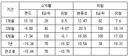 2007³â 2¿ù ¼³Á¤µÅ 1³â¹Ý Á¤µµ ¿î¿ëµÈ ÀÌ ÆÝµåÀÇ ÃÖ±Ù 1°³¿ù ¼öÀÍ·üÀº 10.18%·Î °°Àº ±â°£ -4.91%¸¦ ±â·ÏÇÑ ÇØ¿ÜÁÖ½ÄÇü À¯ÇüÆò±ÕÀ» Å©°Ô »óȸÇÏ´Â ¸ð½ÀÀ» º¸À̰í ÀÖ´Ù. ¶ÇÇÑ ¼ÒºñÀç¼½ÅÍ À¯ÇüÆò±Õ ¼öÀÍ·üÀÎ 8.50% º¸´Ùµµ ³ôÀº ¼º°ú·Î ¼ÒºñÀç¼½ÅÍ ³»¿¡¼µµ ÁÁÀº ¼ºÀûÀ» º¸¿©ÁÖ°í ÀÖ´Ù. ÆÝµåÀÇ À§ÇèÀ» ³ªÅ¸³»´Â º¯µ¿¼ºÀº Àü±¸°£¿¡¼ µ¿ÀÏ À¯Çüº¸´Ù ³ôÀº ÆíÀÌ´Ù.