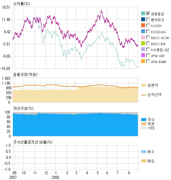 ÆÝµå´Â ±¹³» Áõ½Ã°¡ Å«ÆøÀÇ »ó½Â¼¼¸¦ º¸¿´´ø 2007³â¿¡´Â À¯ÇüÆò±ÕÀ» ÇÏȸÇÏ´Â ¼öÀÍ·üÀ» ±â·ÏÇßÁö¸¸ ÀÛ³â 11¿ù ÀÌÈÄÀÇ Áö¼ö Á¶Á¤Àå¿¡¼´Â ¿Ã 2¿ù°ú 5¿ùÀ» Á¦¿ÜÇϰí´Â ¸Å¿ù À¯ÇüÆò±ÕÀ» »óȸÇÏ´Â ¼öÀÍ·üÀ» º¸À̰í ÀÖ´Ù. ƯÈ÷ ¿Ãµé¾î ÇöÀç±îÁöÀÇ ¼öÀÍ·üÀº -13.88%·Î º¥Ä¡¸¶Å©¼öÀÍ·üº¸´Ù´Â ³·Àº ¼öÁØÀÌÁö¸¸ À¯ÇüÆò±ÕÀ» 6%°¡±îÀÌ ÃʰúÇϸç %¼øÀ§ 4À§¸¦ ±â·ÏÇϰí ÀÖ´Ù. ÀÌ´Â °°Àº ±â°£ ÅõÀÚºñÁßÀÌ ³ô¾Ò´ø Æ÷½ºÄÚ(-28.14%)¿Í SKÅÚ·¹ÄÞ(-15.35%) µîÀÇ Ç϶ô¼¼¿¡µµ ºÒ±¸ÇÏ°í »ï¼ºÀüÀÚ(2.39%), KT&G(16.24%), Çö´ëÂ÷(1.17%)µîÀÇ ¼öÀ͹æ¾î¿¡ µû¸¥ °ÍÀ¸·Î ºÐ¼®µÈ´Ù.