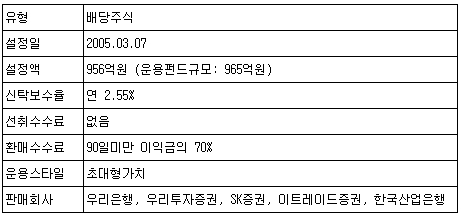 ÀÌ ÆÝµå´Â ´ëÇü¿ì·®ÁÖ¸¦ Áß½ÉÀ¸·Î ¹è´çÁ¤Ã¥¿¡ Àϰü¼ºÀÌ ÀÖ°í ¹è´ç¼öÀÍÀÌ ³ôÀº ±â¾÷¿¡ Àå±âÅõÀÚÇÏ´Â ±×·ì°ú ¹è´ç¼öÀÍ·ü´ëºñ ÀúÆò°¡µÈ ±â¾÷¿¡ Áߴܱâ·Î ÅõÀÚÇÏ´Â ±×·ìÀ¸·Î ³ª´² Æ÷Æ®Æú¸®¿À¸¦ ±¸¼ºÇϰí ÀÖ´Ù. Á¾¸ñ¼ö´Â 40°³ ¾ÈÆÆÀ¸·Î ¼Ò¼öÀÇ ÃÊ´ëÇüÁÖÀ§ÁÖ·Î Æ÷Æ®Æú¸®¿À¸¦ ±¸¼ºÇϰí Àִµ¥ »ï¼ºÀüÀÚ, Çö´ëÂ÷, SKÅÚ·¹ÄÞ µî »óÀ§ 10À§ÀÇ Á¾¸ñ¿¡ ´ëÇÑ ÅõÀÚ ºñÁßÀÌ 54.5%·Î ³ô´Ù.