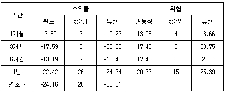 ÆÝµåÀÇ ÃÖ±Ù 1³â ¼º°ú´Â -22.42%·Î ÀϹÝÁÖ½ÄÆÝµå °¡¿îµ¥ »óÀ§ 26%¿¡ ÇØ´ç ÇÏ´Â ¾çÈ£ÇÑ ¼ºÀûÀ» ±â·ÏÇϰí ÀÖ´Ù. ƯÈ÷ ÃÖ±Ù 6°³¿ù µ¿¾È ¾à¼¼Àå¿¡¼ ¼±¹æÇÏ¸é¼ ¼øÀ§°¡ Çâ»óµÇ°í ÀÖ´Ù. ÀÌ´Â ±× µ¿¾È ³ôÀº ºñÁßÀ¸·Î ÅõÀÚÇØ¿Â ÀǾàǰ, À½½Ä¾÷Á¾ µîÀÇ °æ±â ¹æ¾î ÁÖµéÀÌ Ç϶ôÀå¿¡¼ Àß ¹öÅßÁÖ¸é¼ »ó´ëÀûÀ¸·Î ÆÝµå ¼öÀÍ·ü ³«ÆøÀÌ À۾ұ⠶§¹®ÀÌ´Ù.