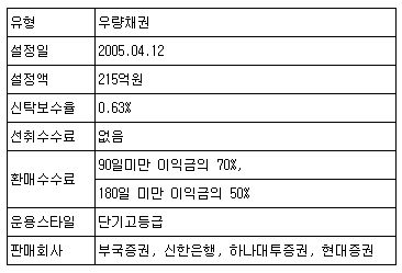 ÆÝµå´Â 2006³â 11¿ù 1,256¾ï¿øÀÇ ¼³Á¤±Ô¸ð¸¦ ÀÚ¶ûÇϰí ÀÖ¾úÀ¸³ª 2007³â µé¾î ÁÖ°¡»ó½ÂÀ¸·Î ÁÖ½ÄÇüÆÝµå·Î °ü½ÉÀÌ ÁýÁßµÇ°í µ¿½Ã¿¡ ä±ÇÇü ÆÝµåÀÇ ¼öÀÍ·üÀÌ ÀúÁ¶ÇÏ°Ô ³ªÅ¸³ªÀÚ ÀÚ±ÝÀÌ ÀÌÅ», ÇöÀç´Â 215¾ï¿øÀÇ ¼³Á¤¾×À» À¯ÁöÇϰí ÀÖ´Ù.