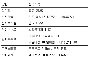 ÀÌ ÆÝµå´Â Áß±¹º»ÅäÀÇ AÁõ½ÃÀÇ Àå±âÀü¸ÁÀ» ¹à°Ô º¸´Â ÅõÀÚÀڷμ AÁõ½ÃÀÇ ³ôÀº º¯µ¿¼ºÀ» ÃæºÐÈ÷ °¨³»ÇÒ ¼ö ÀÖ´Â ÅõÀÚÀÚ¿¡°Ô ÀûÇÕÇÏ´Ù. ºÐ»êÅõÀÚÂ÷¿ø¿¡¼ Á¢±ÙÇØ¾ßÇϸç Àå±âÀûÀÎ ¸¶Àεå·Î ÅõÀÚÇÏ´Â °ÍÀÌ ¹Ù¶÷Á÷ÇÏ´Ù. ¶ÇÇÑ ÀÌ ÆÝµå´Â Áß±¹Á¤ºÎÀÇ ¿Üȯ°ü¸® ±ÔÁ¤À¸·Î ÀÎÇØ ȯ¸Å´ë±Ý Áö±ÞÀÌ ¸Å¿ù 1ȸ(¸Å¿ù 25ÀÏ)¸¸ Áö±ÞµÇ´Â Ư¡ÀÌ Àֱ⠶§¹®¿¡ ÀÌ¿¡ ´ëÇÑ ÃæºÐÇÑ ÀÌÇØ°¡ ÇÊ¿äÇÏ´Ù.
