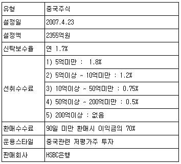 ÀÌ ÆÝµå´Â Áß±¹ ÆÝµå°¡ ÇÑÂü ºÕÀ» ÀÌ·ð´ø 2007³â 4¿ù¿¡ ¿ª¿ÜÆÝµåÀÎ ¡®HSBCÁß±¹ÁÖ½ÄÇüÆÝµå¡¯¸¦ º¹Á¦ÇØ ¸¸µé¾ú´Ù. ÆÝµå´Â ÃÖ°í(High Qulified)ÀÇ °í°´À» ´ë»óÀ¸·Î, ¼¼°è¿¡¼ °ü½ÉÀÌ ÁýÁߵǴ Áö¿ª(Hot Interest)¿¡ ÅõÀÚÇÏ´Â ÆÝµå¸¦ HSBC¿¡¼ ÆÇ¸ÅÇϰí, ÀÌ È¸»çÀÇ ÀÚȸ»çÀÎ Halbis¿¡¼ ¿î¿ëÇÑ´Ù´Â Àǹ̿¡¼ À̸§¿¡ 'H'¸¦ ³Ö°í ÀÖ´Ù.