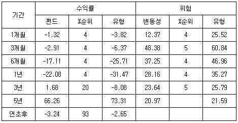 ÀÌ ÆÝµå´Â 22ÀÏ ±âÁØÀ¸·Î ÃÖ±Ù ÇÑ ´Þ°£ -1.32%ÀÇ ¼öÀÍ·üÀ» ±â·ÏÇß´Ù. ÀÌ´Â À¯ÇüÆò±Õº¸´Ù 2.50%Æ÷ÀÎÆ® ³ôÀº ¼º°ú´Ù. ÃÖ±Ù 1³â°£ ¼öÀÍ·üÀº À¯ÇüÆò±Õº¸´Ù 9.40%Æ÷ÀÎÆ® ³ôÀº -22.08%¸¦ ±â·ÏÇß´Ù. ÀÌ·± À¯ÇüÃʰú¼öÀÍ·üÀº Áõ½Ã°¡ ±Þ¶ôÇÑ ÀÛ³â ÈĹݱâºÎÅÍ µÎµå·¯Á³´Ù. °¡Àå Å« ¿äÀÎÀº ÁÖ½ÄÅõÀÚ ºñÁßÀÌ ³·´Ù´Â µ¥ ÀÖ´Ù. ¶ÇÇÑ ½ÇÀû °³¼±ÀÌ ¿¹»óµÇ´Â °æ±âµÐ°¨ ³»¼öÁÖÀÇ »ó´ëÀû ÅõÀÚºñÁßÀÌ ³ôÀº °Íµµ ÇÑ ¸ò Çϰí ÀÖ´Ù. ÀÌ ÆÝµåÀÇ ¿î¿ëÀ» ´ã´çÇÏ´Â ¾îÁØ ÆÝµå¸Å´ÏÀú´Â ¡°ÀÛ³â ÇÑ ÇØ ±Þ°ÝÇÑ ÁÖ°¡Ç϶ô±â¿¡ ¼öÀÍ·ü ¹æ¾î¿¡ ¼º°øÇÑ Ãø¸éÀÌ ÀÖ´Â ¸¸Å, À̰ÍÀ» ±âȸ·Î ±â¾÷ÀÇ ±âÃÊü·Â ´ëºñ ÁÖ°¡°¡ °úµµÇÏ°Ô Ç϶ôÇÑ Á¾¸ñ Áß °æÀï·ÂÀ» ²ÙÁØÈ÷ À¯ÁöÇϰí ÀÖ´Â Á¾¸ñÀ» Áö¼ÓÀûÀ¸·Î ¹ß±¼ÇØ ÅõÀÚÇÏ´Â Àü·«À» ÆîÄ¥ °èȹ¡±À̶ó°í ¹àÇû´Ù.