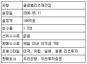 ¡®ºí·ç·£µå±Û·Î¹úºÎµ¿»êÀç°£Á¢A¡¯´Â ÀÚ»êÀÇ 60%ÀÌ»óÀ» ºÎµ¿»ê ÆÝµå¿Í ÇØ¿Ü¿¡ »óÀåµÈ ¸®Ã÷(REITs), ºÎµ¿»ê °ü·ÃÁÖ½Ä µî¿¡ ÅõÀÚÇØ ¹è´ç¼öÀͰú °¡°Ý»ó½ÂÀ¸·Î ÀÎÇÑ ¼öÀÍÀ» Ãß±¸ÇÏ´Â ÆÝµå´Ù. ÀÌ ÆÝµå´Â °Å½Ã°æÁ¦ ¹× ºÎµ¿»ê ½ÃÀå ºÐ¼®À» ÅëÇØ º¯È¸¦ Æ÷ÂøÇϰí ÀÌ·¯ÇÑ º¯È°¡ ¿µÇâÀ» ³¢Ä¡´Â ½ÃÀå°ú ¼½ÅÍ¿¡ ´ëÇÑ ¸®¼Ä¡¸¦ °ÅÃÄ ±¹°¡º°, Áö¿ªº°, ¼½Åͺ°, Á¾¸ñº° ºñÁßÀ» °áÁ¤ÇÑ´Ù. °Å½Ã°æÁ¦ ¹× ÀÚº»½ÃÀå º¯È¿¡ ¸ÂÃç ¼ö½Ã·Î Áö¿ª ±¹°¡º° ÅõÀÚºñÁßÀ» ÀçÁ¶Á¤ÇÑ´Ù. Àç°£Á¢A ÆÝµå´Â ±âº»ÀûÀ¸·Î ¹Ì±¹, À¯·´, ÀϺ», È«Äá µîÀÇ ºÎµ¿»ê ¼½ÅÍ¿¡ ÁÖ·Î ÅõÀÚÇÏ°í ºÎºÐÀûÀ¸·Î À¯·´°ú ¾Æ½Ã¾ÆÀÇ ½Å±Ô »óÀ帮Ã÷, À̸Ó¡¸¶ÄÏ ºÎµ¿»ê°³¹ßȸ»ç µî¿¡ ÅõÀÚÇϱ⵵ ÇÑ´Ù. 2008³â 3¿ù±îÁö´Â ´ëºÎºÐÀÇ ÀÚ»êÀ» ºÎµ¿»ê ÆÝµå¿¡ ÅõÀÚÇßÀ¸³ª ÀÌÈÄ ºÎµ¿»ê ÆÝµå(ºñ»óÀå) ÅõÀÚºñÁßÀ» Á¡Â÷ ÁÙÀÌ´Â ´ë½Å ¸®Ã÷(»óÀå) ÅõÀÚ¸¦ 60%¢¦70%¼öÁØÀ¸·Î È®´ëÇß´Ù. 2008³â 11¿ù¸» ÀÌ ÆÝµå´Â ÀÚ»êÀÇ 64.9%¸¦ ¿Ü±¹ ¸®Ã÷¿¡, 12.9%¸¦ ºÎµ¿»ê °ü·ÃÁֽĿ¡ ÅõÀÚÇϰí ÀÖ´Ù. ¸®Ã÷ ¹× ºÎµ¿»ê ÁÖ½ÄÅõÀÚ Á¾¸ñ ¼ö´Â 19°³´Ù. Áö¿ªº°·Î´Â ¸®Ã÷ ¹× ºÎµ¿»ê°ü·Ã ÁÖ½Ä Áß ¹Ì±¹ÀÇ ºñÁßÀÌ 59%·Î °¡Àå ³ô°í ´ÙÀ½À¸·Î ¡âÀ¯·´(¿µ±¹) 24.4% ¡âÀϺ» 9.77% ¡âÈ«Äá 6.77% µîÀÇ ºñÁßÀ» º¸À̰í ÀÖ´Ù. 2008³â 6¿ù°ú ºñ±³ÇßÀ» ¶§ ¹Ì±¹°ú À¯·´¿¡ ´ëÇÑ ÅõÀÚ ºñÁßÀº °¢°¢ 24.2%Æ÷ÀÎÆ®, 13.7%Æ÷ÀÎÆ®¾¿ Áõ°¡Çß°í ¾Æ½Ã¾ÆÀÇ °æ¿ì 22.48%Æ÷ÀÎÆ® °¨¼ÒÇß´Ù. ÀÛ³â ÇϹݱâ ÀÌÈÄ ¾Æ½Ã¾ÆÀÇ ºÎÁøÀÌ µÎµå·¯Áö¸é¼ ¾Æ½Ã¾ÆÅõÀÚºñÁßÀ» ÁÙÀÎ °ÍÀÌ´Ù. ¹Ì±¹°ú À¯·´Àº Ç϶ôÆøÀÌ °úµµÇß´Ù´Â ÆÇ´Ü¿¡ µû¶ó ±Þµî¶ô ½Ã ³·Àº °¡°Ý¿¡ ¸Å¼öÇÏ´Â ¸Å¸ÅÀü·«À» ÃëÇÏ¸é¼ ÅõÀÚ ºñÁßÀ» ³ô¿©¿Ô´Ù.